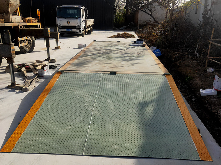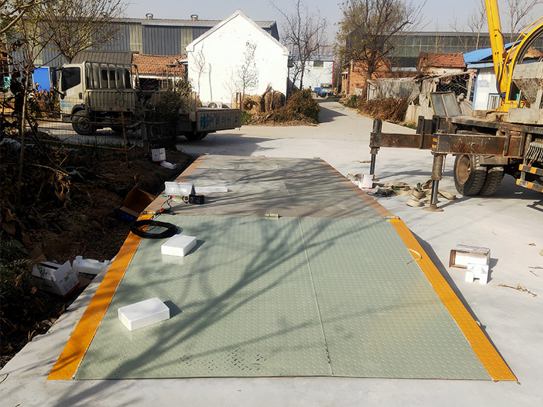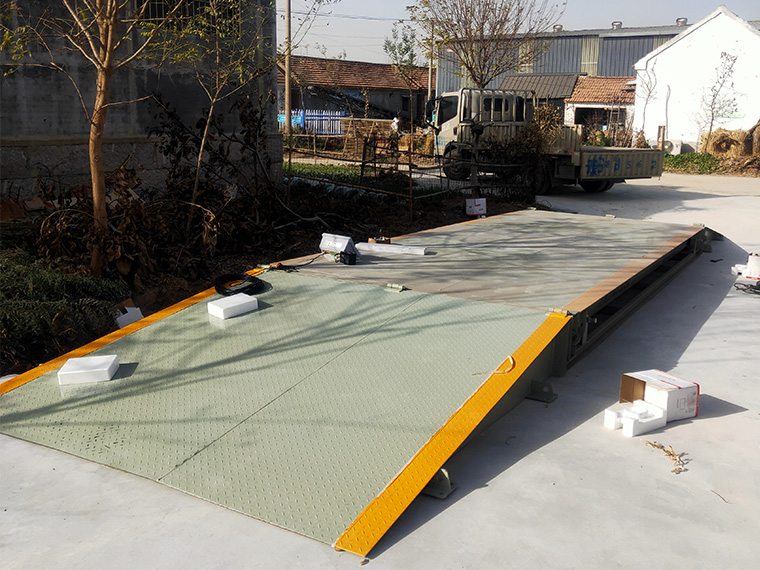 山东济宁鱼台县明杰大豆购销30吨双向钢制斜坡地磅施工案例