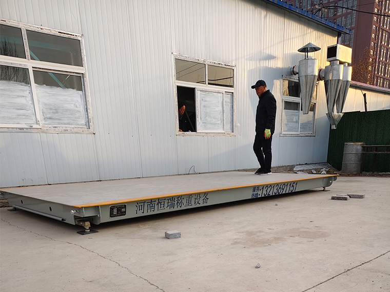 采购背景: 濮阳市华龙区南海路赵村新区面粉厂经营范围:粮食加工食品生产;食品生产;食品销售。因该公司面粉生产需要进行称重计量,联系河南恒瑞地磅厂订购了一台2.5*5米定额20吨的地磅。2.5*5米的尺寸相对较小,更易于在有限的空间内安装和使用。面粉厂的地磅需承受频繁使用的磨损,2.5×5米地磅采用无基坑安装形式,不仅便于维护,还能适应面粉厂复杂的工作环境。